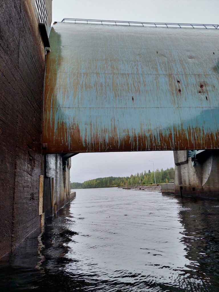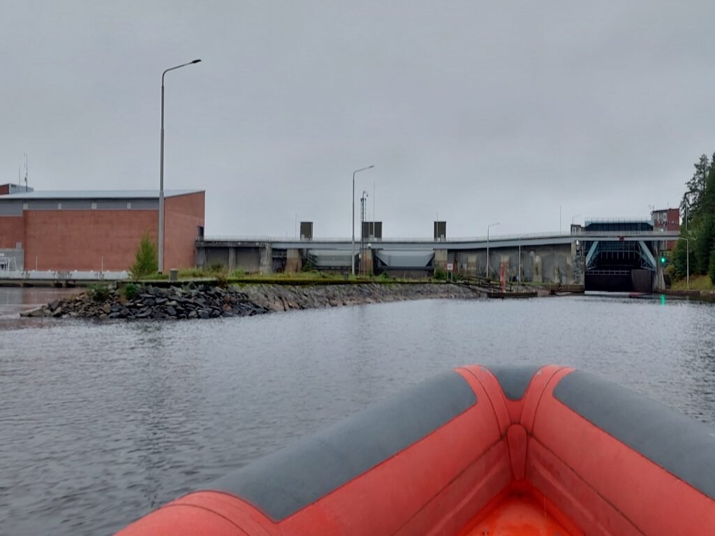 Sunnuntaina ohjelmassa oli Vuoksen aluekokous ja heti sen päätyttyä pakkasimme Saran lähtökuntoon. Ne varustekassit, mitkä eivät ruumaan mahtuneet, laitoimme sateelta suojaan jätesäkin sisään ja sidoimme ne kannelle kiinni mahdollista aallokkoa silmällä pitäen. Matkaan lähdettiin klo 10.15 Savonlinnasta, tällä kertaa ilman Pv Väinöä, koska miehistöllämme oli kiire ehtiä Pielisjoen viimeiseen sulutukseen eli Kaltimon kanavaan ennen sen sulkeutumista. Yksi lyhyt pysähdys tehtiin Rääkkylän Paksuniemessä ja ruokatauko Joensuussa ei sekään kovin pitkä ollut. Jonkin matkaa jokea pitkin ylös kuljettuamme toinen moottori alkoi hieman oikutella ja pysähdyimme asiaa tutkimaan. Onneksi vika esiintyi vain pienillä kierrosmäärillä ajaessa ja pääsimme normimatkavauhdilla etenemään ilman ongelmia. Kaltimon kanavaan Sara ajettiin puoli tuntia ennen sulkemisaikaa eli klo 17.30.