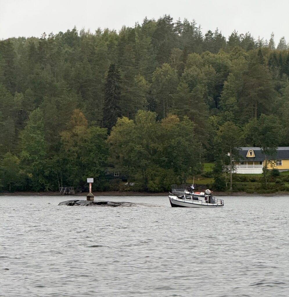 Kolmosrastilta löysimme aluksen, joka oli ajanut karille. Kyseessä oli Lappeenrannan Meripelastajien harjoitusalus Jopi, joka tosiaan oli ajettu luodon päälle. Jopi on moneen harjoitukseen taipuva, sen pohja on vahvistettu karille ajoja varten, siihen on rakennettu avattavia luukkuja simuloimaan vuotavaa alusta ja kaiken lisäksi keulakannella on allas, johon saadaan kaasun avulla sytytettyä tuli. Vapaaehtoiset meripelastajat pääsevät Jopin kanssa harjoittelemaan aluksen irrottamista karilta, tyhjentämistä vedestä sekä palavan aluksen sammuttamista aina uudelleen ja uudelleen. Tällä kertaa kyseessä oli siis karilta irroitus -harjoitus. Miehistömme nousi Jopin kyytiin tutkimaan mahdollisia karille ajosta tulleita vaurioita. Sellaisia ei näkynyt ja Sara veti Jopin irti karilta. Olimme ottaneet vuotomaton valmiiksi esille ja sille olikin käyttöä, koska pian huomattiin Jopin vuotavan keulaosastosta. Jopin oma pilssipumppu käynnistettiin heti ja vuotomatto laitettiin paikoilleen. Sen jälkeen otettiin toinenkin tyhjennyspumppu käyttöön ja vedenpinta Jopin keularuumassa alkoi laskea hyvää vauhtia, kun uutta vettä ei enää tullut lisää. Jopista ja sen ominaisuuksista voi käydä katsomassa kuvia ja videoita Lappeenrannan yhdistyksen sivuilla.